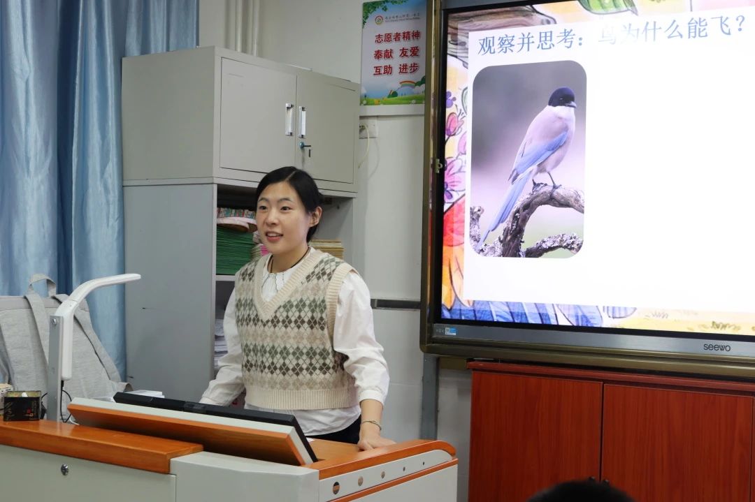 主讲人首先提出一个引人思考的问题:“什么是鸟?”,激发同学们的思考。随后,通过与同学们的互动,一起回忆和辨别具有飞行能力的动物,进一步明确了鸟类的概念与特点。