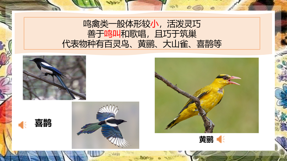 在科普过程中,主讲人们运用生动的图片和音频资料,呈现了各种鸟类的叫声,让同学们更加形象地了解鸟类的六大生态类群。
