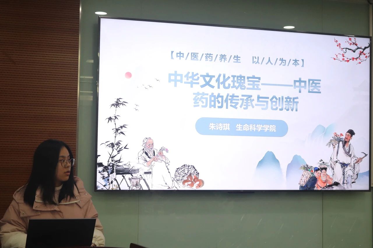 2023级博士党支部朱诗琪同学以“中华文化瑰宝——中医药的传承与创新“为主题,讲述了中医药学的重要性、传统中医药的智慧、现代中医药的继承与发展、中医药的重要贡献几个方面,突出了我们要传承中华优秀传统文化,铸牢中华民族共同体意识的主旨。