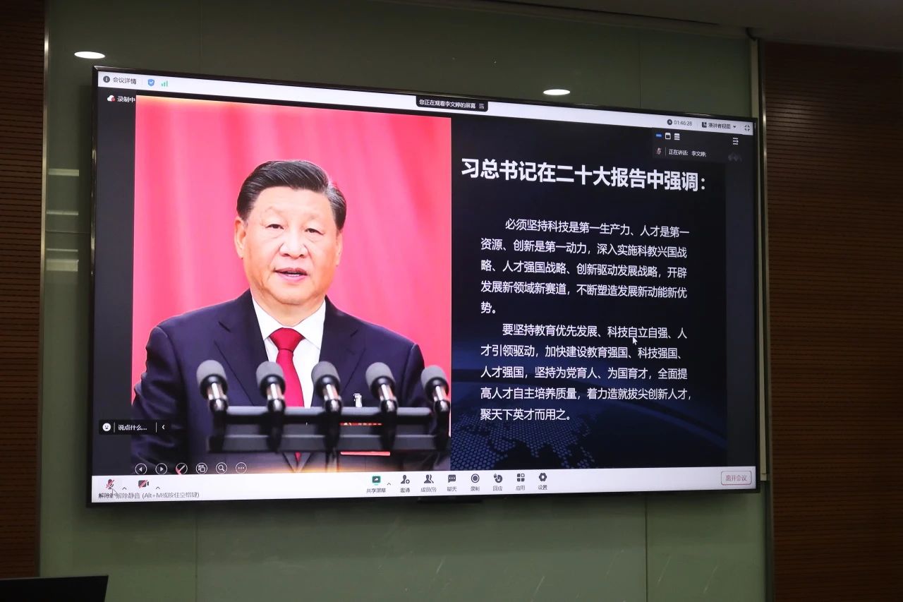 21级博士党支部李文婷同学以“科技是第一生产力 人才是第一资源 创新是第一动力”为主题,讲解了习总书记在二十大报告中关于坚持科技是第一生产力、人才是第一资源、创新是第一动力的指导,并结合自身的经历,进一步强调了科技、人才、创新三者的关系和重要性。