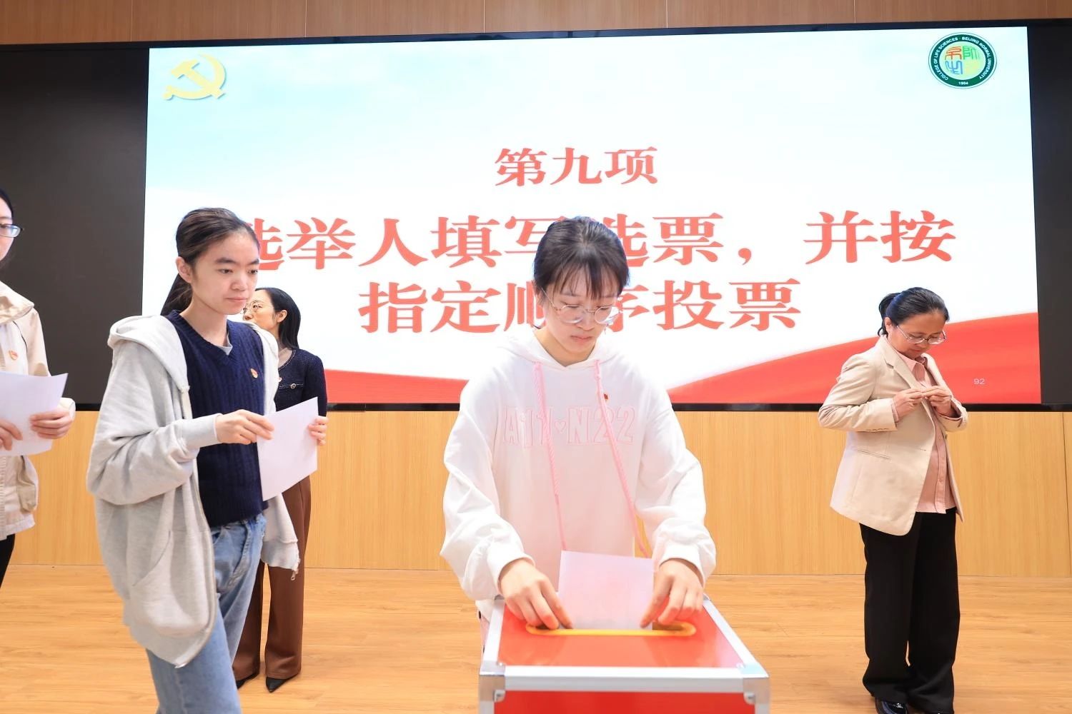 2024年4月28日上午,中共冰球突破豪华版官方网站党员大会在教九502胜利召开,选举产生了新一届党委委员。校党委组织部李进忠同志和刘珊珊同志列席会议并指导工作,冰球突破豪华版官方网站全体师生正式党员参会。会议由冰球突破豪华版官方网站党委书记王天明主持。