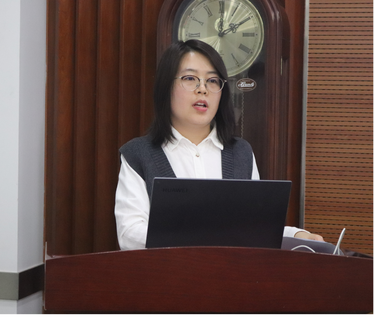 实验技术与行政教师党支部书记孙一娜老师从支部基本情况与支部职能发挥情况等方面阐述了本支部2023年的工作情况。学院党委副书记殷实老师对支部书记孙一娜老师的工作表示认可,希望党支部继续围绕规范化操作的基础去开展活动,向外拓展服务面,服务性的窗口,发挥组织的引领作用。
