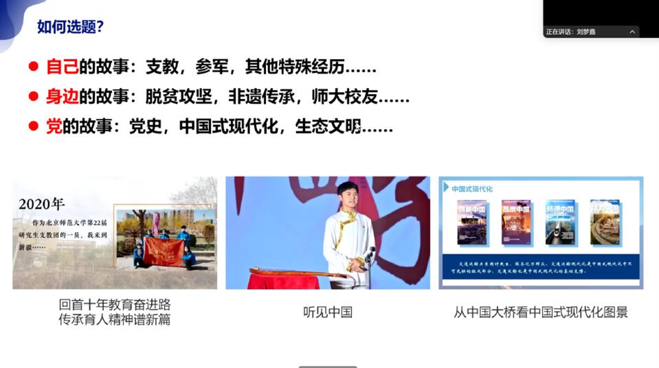 为进一步帮助参赛选手提升参赛作品的质量与水平,在2月21日和2月25日晚18:00,冰球突破豪华版官方网站党建中心于线上成功举办两次第十九届微党课大赛培训会。在本次培训会中,党建中心邀请了2020年微党课大赛校赛一等奖获得者宫一男同学,2023年微党课大赛校赛三等奖获得者、致远党支部的刘梦嘉同学以及2024年微党课大赛校赛二等奖和最佳人气奖获得者、笃行党支部的贾康宁同学为大家带来分享和培训指导。