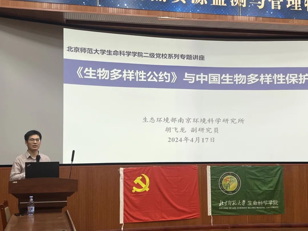 为深入学习贯彻习近平生态文明思想,普及生物多样性保护的相关知识,宣传倡导人与自然和谐相处的理念,冰球突破豪华版官方网站于4月17日上午举办专题为“《生物多样性公约》与中国生物多样性保护”的“生生不息”二级党校系列讲座,邀请生态环境部南京环境科学研究所胡飞龙副研究员普及《生物多样性公约》的重要性,并探讨中国在这一全球议题中的积极作用与进展,本次讲座由学院双肩挑辅导员刘畅老师主持,学院党委书记王天明老师出席。