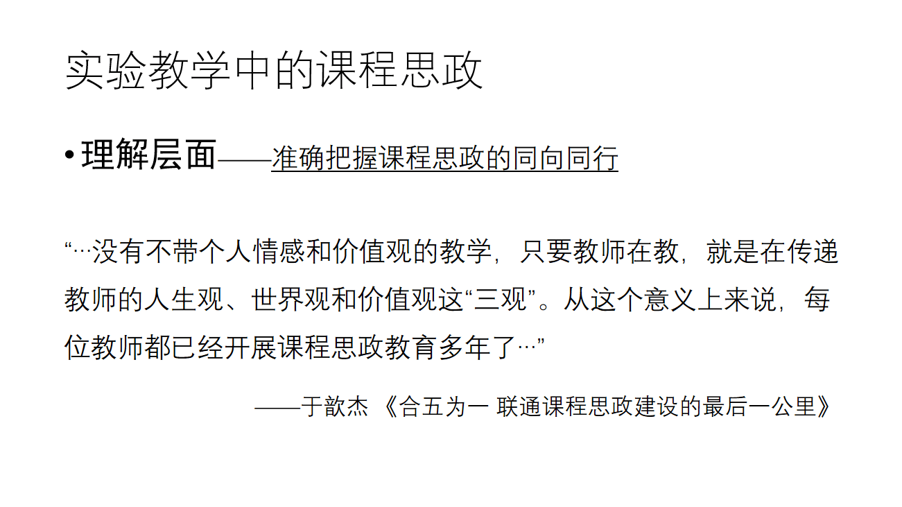 最后,徐冰老师指出课程思政建设是一项系统工程,我们要高度重视,全面规划,循序渐进,不断提高教学效果。廖万金老师提出课程思政建设要遵循教育教学规律和人才培养规律,适应生物学科专业的特点,要充分发挥教师的主体作用,切实提高每一位教师参与课程建设的积极性和主动性。