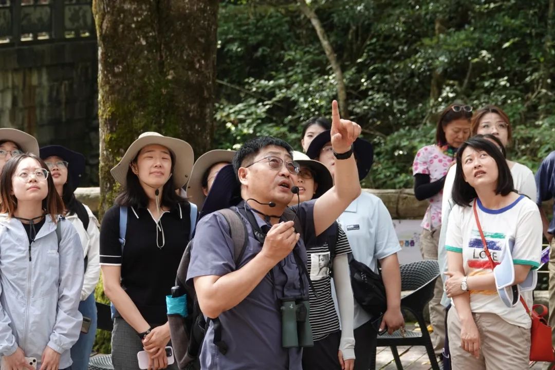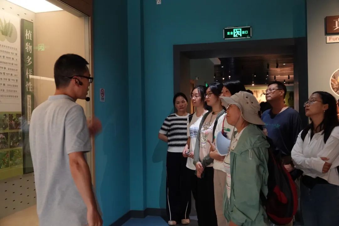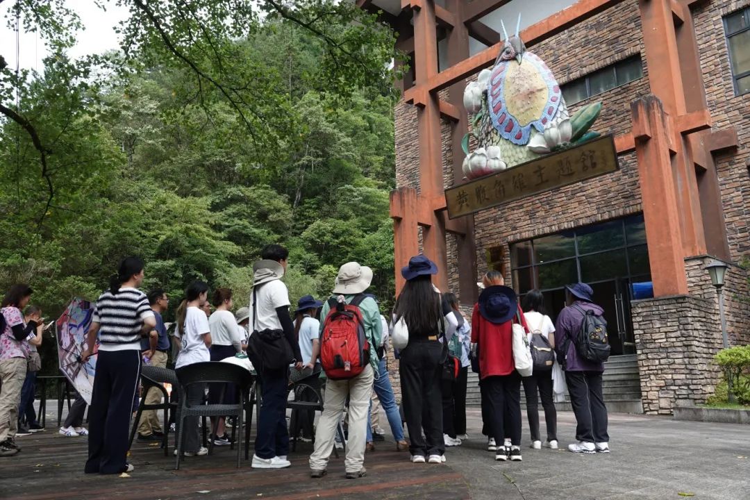 接着,在黄桥保护站站长刘西的引导与讲解下,团队进入馆内深入探访和学习。从乌岩岭的优美风光与生物多样性,到黄腹角雉的科研与保护,再到一代代科研工作者的辛勤耕耘与薪火传承,学员们兴趣盎然,多位老师和同学积极沟通交流,收获颇丰。