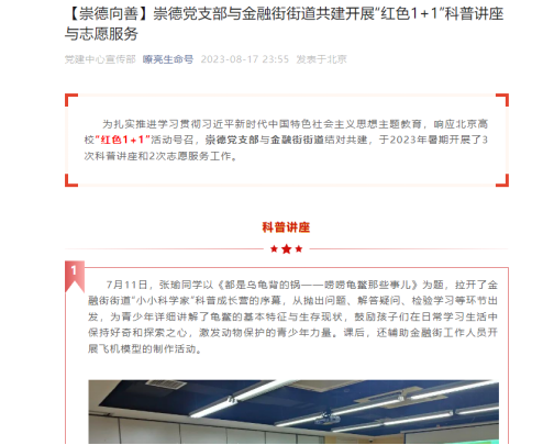 崇德党支部与金融街街道共建开展“红色1+1”科普讲座与志愿服务