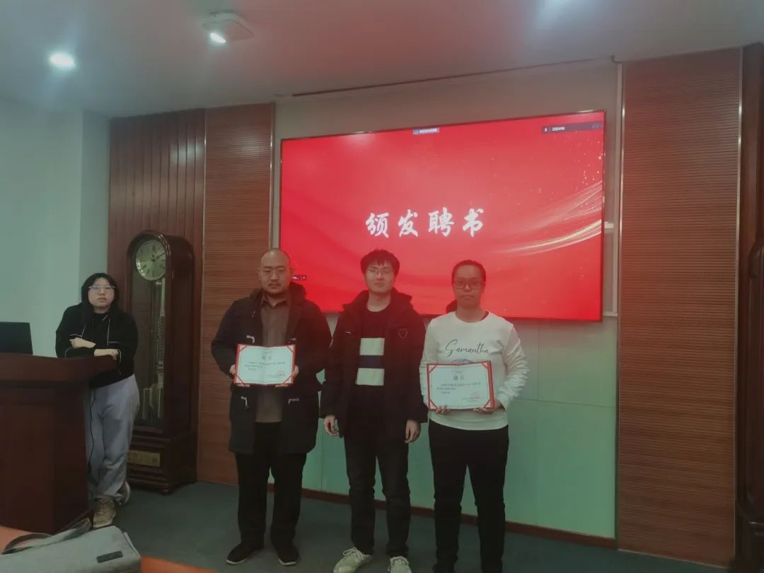 培训会的最后,党建中心实践部部长高翔为二位同学颁发聘书。