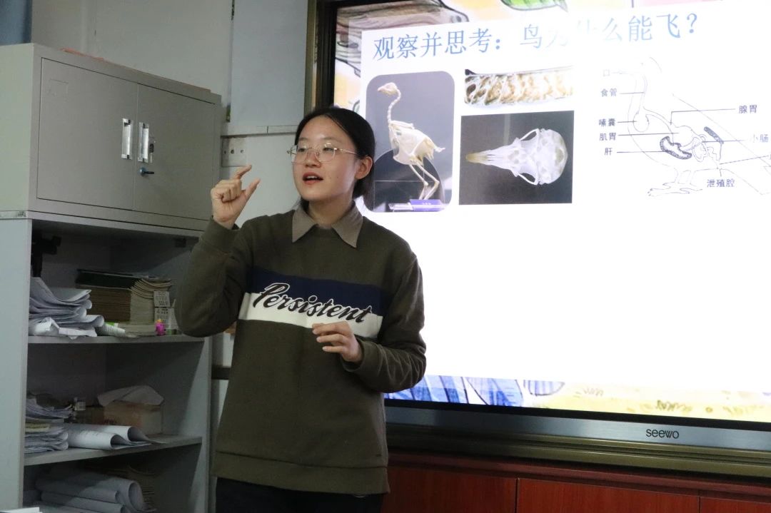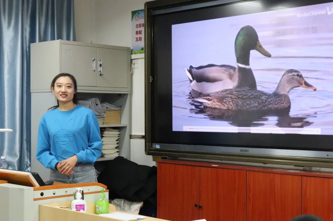 在科普过程中,主讲人们运用生动的图片和音频资料,呈现了各种鸟类的叫声,让同学们更加形象地了解鸟类的六大生态类群。