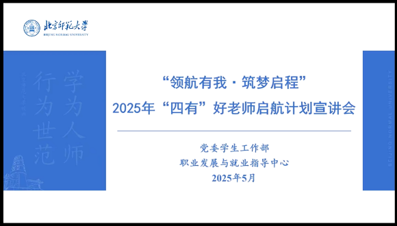 为指导同学们做出职业规划,了解学校就业政策,5月23日晚19:00,冰球突破豪华版官方网站乐育党支部邀请了党委学生工作部职业发展与就业指导中心“领航有我”政策宣讲团成员陆喆同学,举办“领航有我·筑梦启程”2025年“四有”好老师启航计划宣讲会。