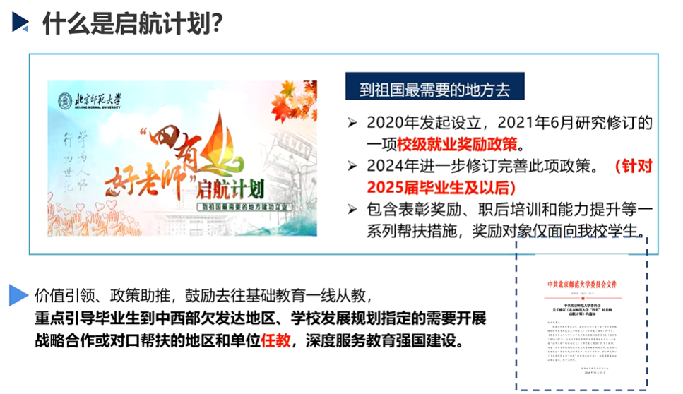 正如一位启航计划入选者所说:“教育的目的不是为了让你摆脱贫困的家乡,而是帮助家乡摆脱贫困。”启航计划不仅是一份奖励,更是一种使命,它鼓励每一位北师大学子将青春热血洒向祖国最需要的地方,用知识与信念点亮乡村孩子的未来。