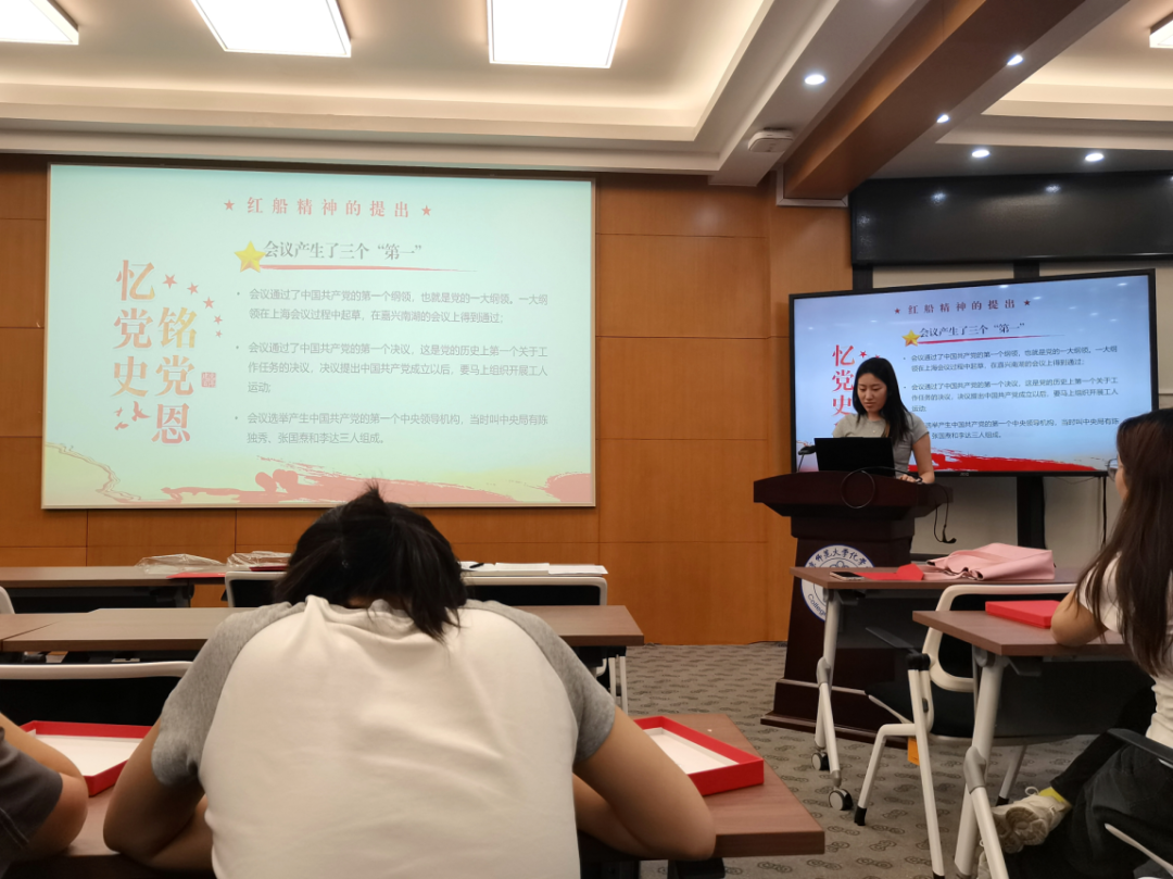 “红船精神”中的“红船”形象,来源于中共一大的召开场所:浙江嘉兴南湖的一条游船。武文琦同志首先带领大家回顾了中共一大的时代背景和会议过程。会议产生了三个“第一”:会议通过了中国共产党的第一个纲领,也就是党的一大纲领;通过了中国共产党的第一个决议,这是党的历史上第一个关于工作任务的决议,决议提出中国共产党成立以后,要马上组织开展工人运动;会议选举产生中国共产党的第一个中央领导机构。