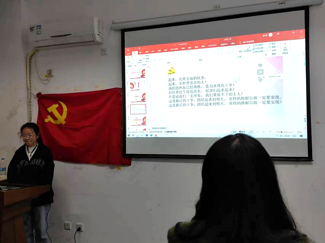 活动伊始,全体成员肃立,共同唱响了激昂的国际歌,以此表达对国际共产主义运动的坚定支持和崇高敬意。