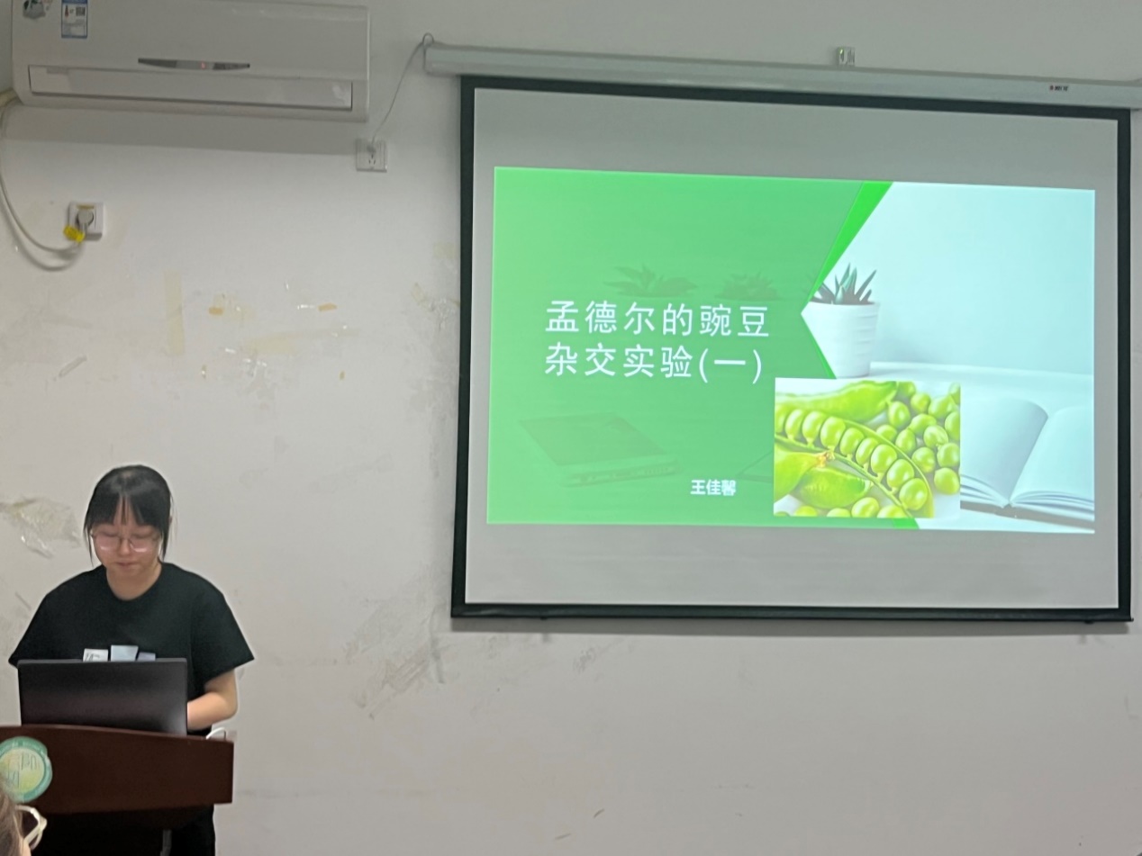 王佳馨同志试讲的主题是《孟德尔的豌豆杂交实验(一)》,详细讲解了豌豆用作遗传实验材料的优点、一对相对性状的杂交实验、对分离现象的解释,在其中穿插讲解了假说—演绎法这一科学方法,充分联系课本与课标。