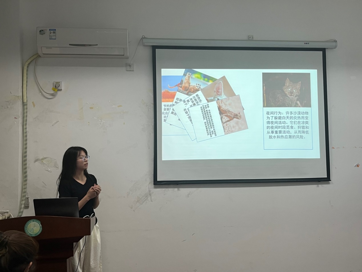 杨雨鑫同志试讲了《生存有道——沙漠生物的生存与进化》科普课程,以铲吻蜥蜴在沙漠中的避暑舞步引入,从沙漠、动物对沙漠环境的适应、植物对沙漠环境的适应三部分展开讲解。课程包含精美的图片和详实的资料,生动的展现了沙漠动植物的进化之道。