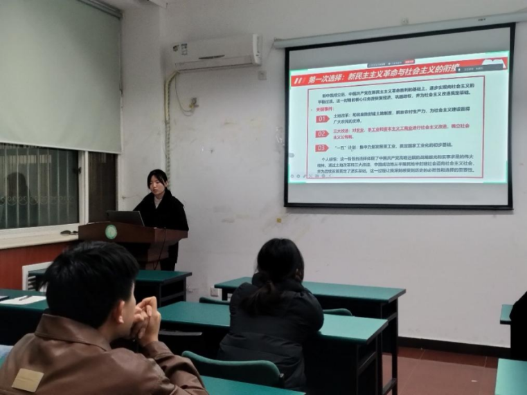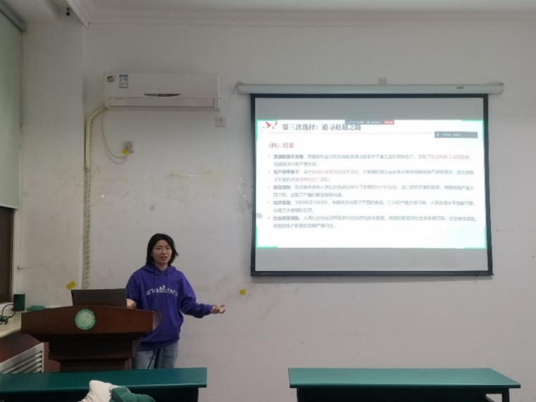 张澍越同志首先简单介绍了书籍的作者、主题与核心内容。接着从中国社会主义路径的五次选择的背景、内容、结果等方面进行了分享,并重点介绍了五次选择的历史意义:具有探索性、创新性、适应性和灵活性。最后她指出,作为新时代的青年,应坚定社会主义信念,深刻理解中国社会主义建设的伟大成就和宝贵经验,积极投身于中国特色社会主义伟大实践,为国家发展贡献力量,努力成为新时代的有为青年。