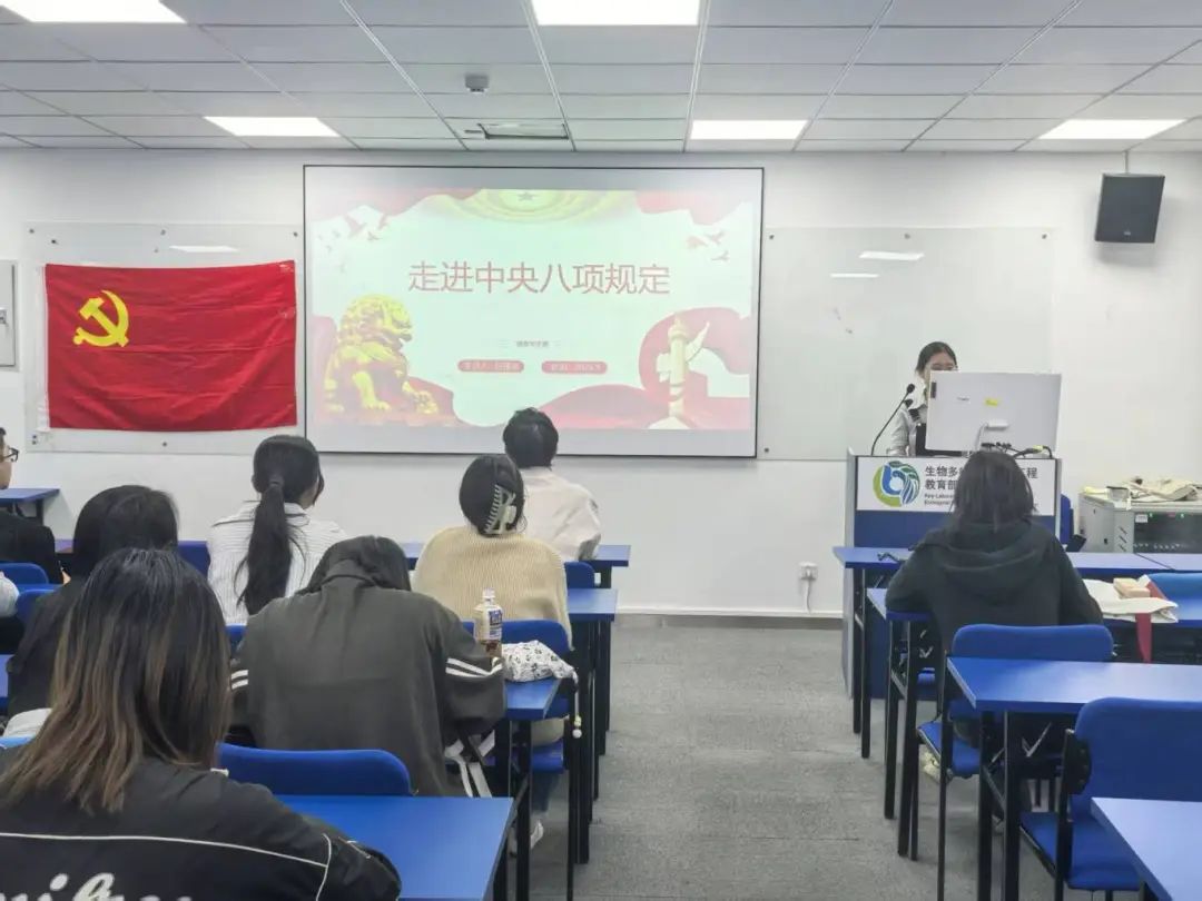 吕墨晗同志讲解党课《走进中央八项规定》。内容包括中央八项规定的历史背景、中央八项规定的核心内容、中央八项规定的核心精神、对学生党员的现实要求四个方面。学习中央八项规定是一场长期征程,是党员干部强化党性、严守纪律、改进作风的必修课,更是党在新时代推进自我革命、永葆生机活力的重要保障。