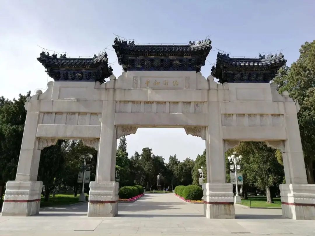 保卫和平坊坐落于中山公园南门内,一进大门,人们就能看到一座高大的石牌坊赫然而立,牌坊上书有郭沫若亲笔题词“保卫和平”四个金色大字,可是这座牌坊的来历却鲜为人知。