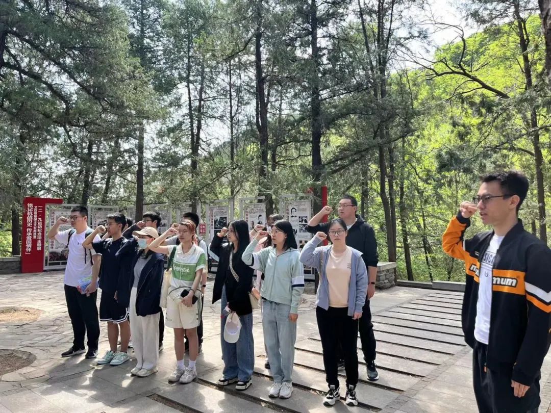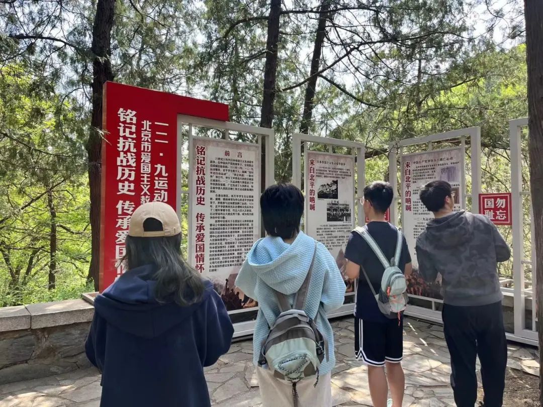 一二·九运动纪念亭位于北京海淀区寿安山西麓、卧佛寺西北樱桃沟内,为纪念“一二·九”学习抗日爱国运动而建立。2024年4月20日上午9时,笃行党支部与2023级生态学硕士团支部共同组织15名党员与团员共同来到北京西郊的国家植物园樱桃沟,寻访“一二·九”运动纪念亭,铭记抗战历史,缅怀革命先烈。