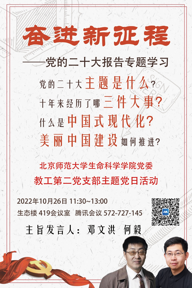 2022年10月27日11:30-13:00,冰球突破豪华版官方网站教工第二党支部在生态楼419会议室召开了本学期第二次主题党日活动,活动以“学习二十大 永远跟党走 奋进新征程”为主题,由支部成员邓文洪和何毅两位老师做主旨发言。学院党委副书记殷实老师参加了会议。