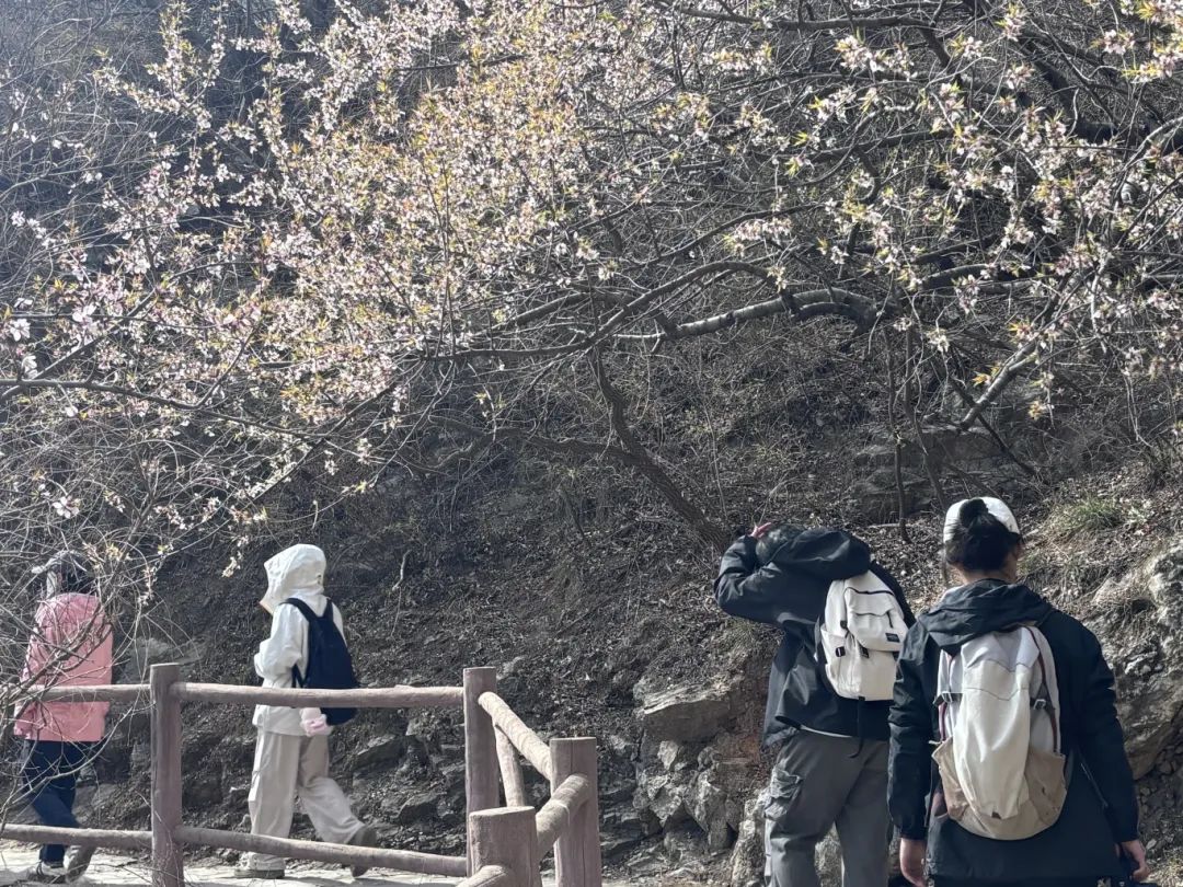 刚踏上入口石阶,何毅老师便驻足,指向岩缝中一簇紫色小花:“这是细距堇菜,北京早春的常见物种,我们今天应该还会发现同属的其他种类,可以帮助我们完善这一地区的本底生物多样性资料。”