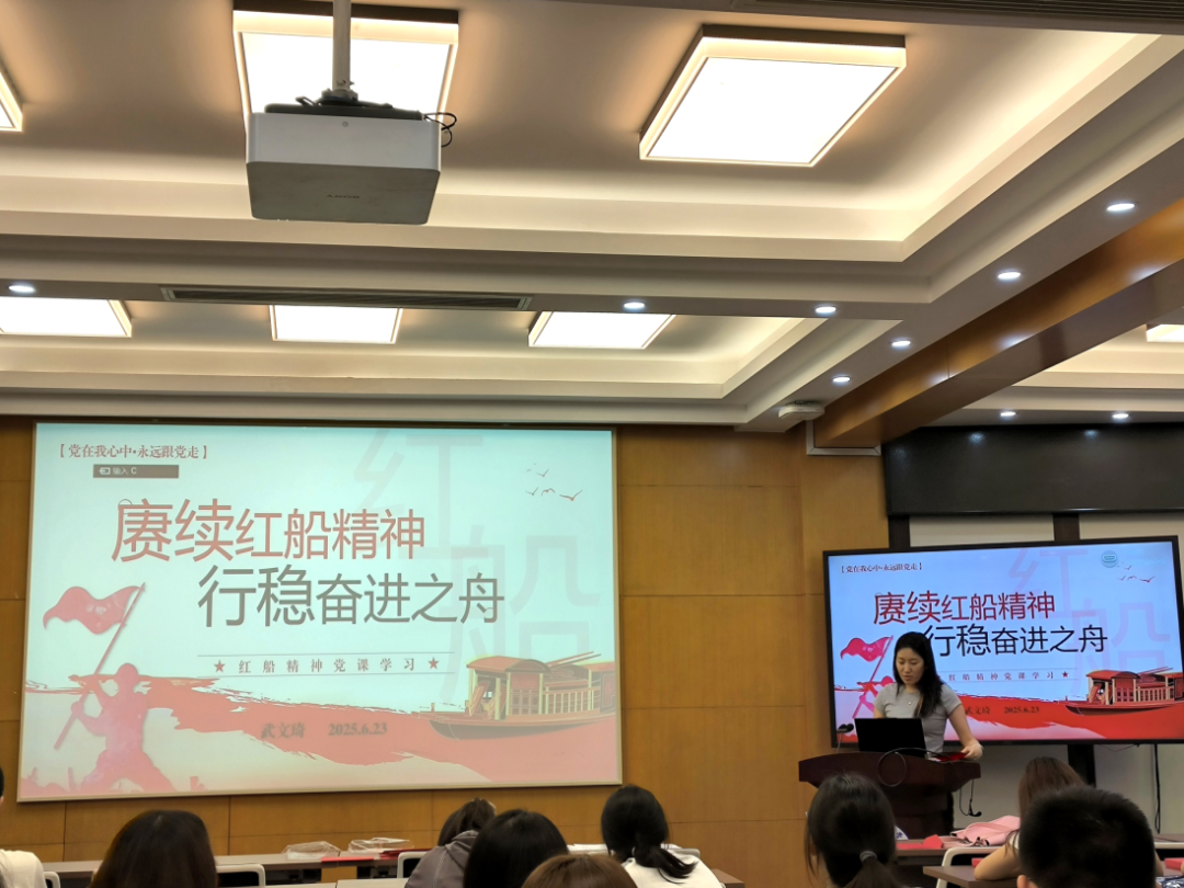 武文琦同志以“赓续红船精神、行稳奋进之舟”为主题,开始第二部分党课授课,内容包括红船精神的提出、历史内涵、价值意义三个方面。