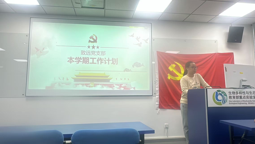党支部书记刘梦嘉同志介绍了支部本学期的工作计划。本学期冰球突破豪华版官方网站致远党支部将与环境学院流域综合管理教研所硕士党支部联合开展“两联两创”共建项目,项目主题为《绿泽“流域”,生命“致远”》。经过前期的充分研讨与深入交流,双方党支部已就该合作达成共识,并顺利完成项目立项工作。