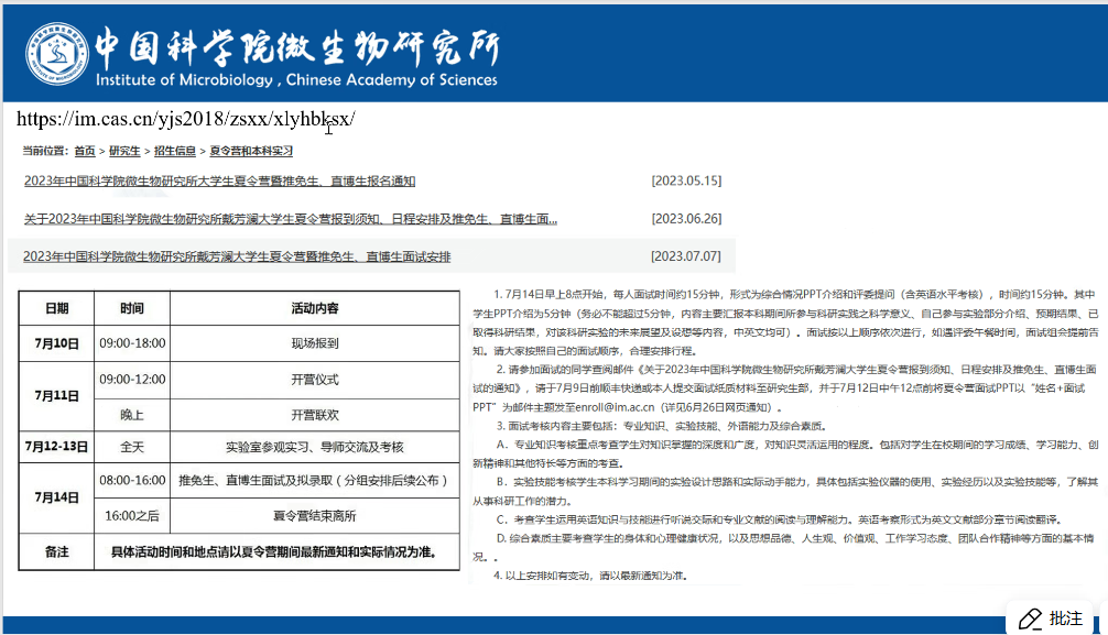第四位是推免至中国科学院微生物研究所的张瀚霖同志。他向大家介绍了中国科学院微生物研究所的基本情况和夏令营相关信息,此外,还展示了他第一年的学习任务和课表安排,说明了研究所高强度学术要求和严格的导师制度。