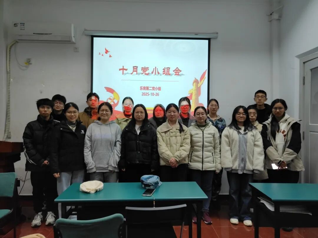 2025年10月26日20:00,乐育党支部第二党小组于生地楼129会议室召开十月党小组会,由党小组组长朱晓菲同志主持。