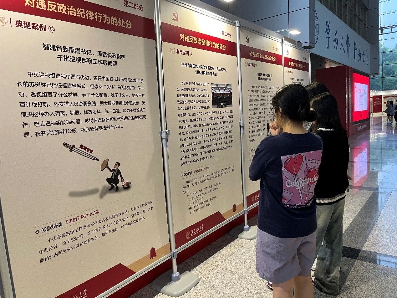 为贯彻落实习近平总书记关于党纪学习教育的重要讲话和重要指示精神,帮助学校广大党员干部师生深化对《中国共产党纪律处分条例》的掌握和理解,按照学校党委有关党纪学习教育工作部署,2024年6月7日,冰球突破豪华版官方网站乐育党支部与教育学部2023级研究生第九党支部共同参观“学纪 知纪 明纪 守纪——2024年党纪学习教育专题展览”。