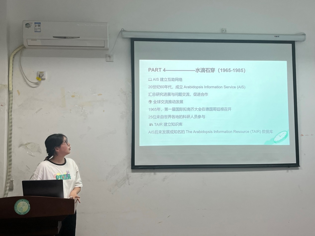 刘京同志试讲了一堂科普课程,主题为《从一棵无人关注的小草,到万众瞩目的“科学明星”——拟南芥的逆袭之路》,介绍了拟南芥从路边一株不起眼的野草,到成为广泛用于植物科学研究的模式生物的过程,同时也拓展了以拟南芥为研究对象发表的众多科研成果,生动再现了拟南芥从默默无闻到学术巨星的蜕变过程。