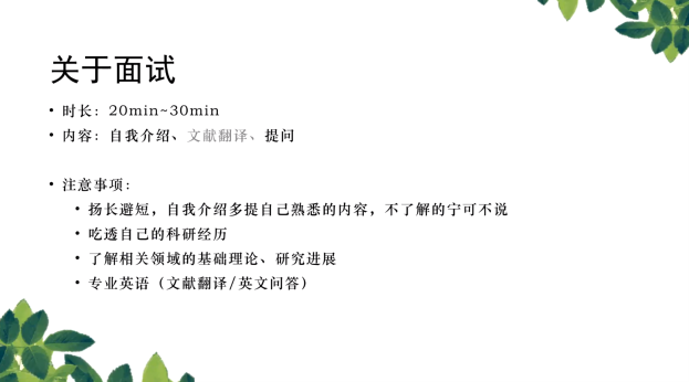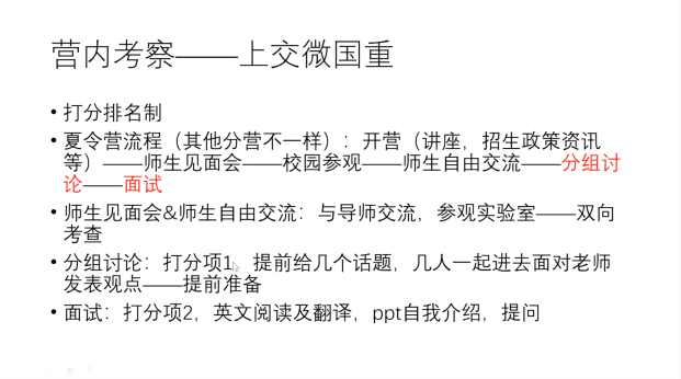 上岸上交微生物国重实验室的杜贺师兄,在夏令营方面分享了许多他的经验,特别是入营后的相关细节,让同学们得以更加深入地了解高校夏令营,能为未来的道路做好准备。杜贺师兄还鼓励同学们自信地展现自己——这不仅是一次优秀的面试所要求的,更是大家保研之路上的“定心丸”。