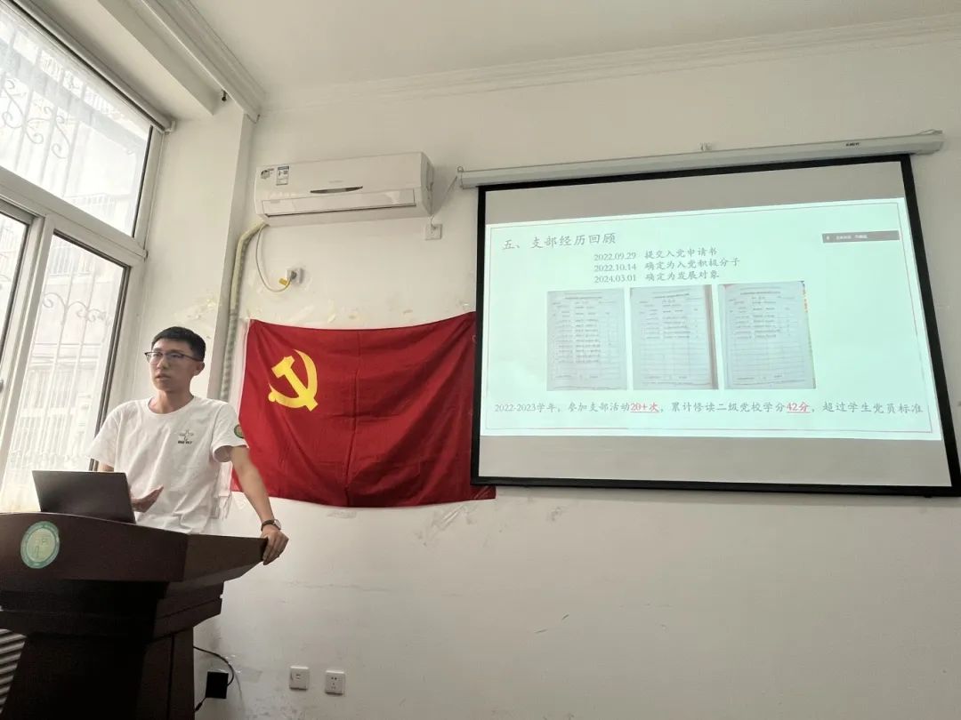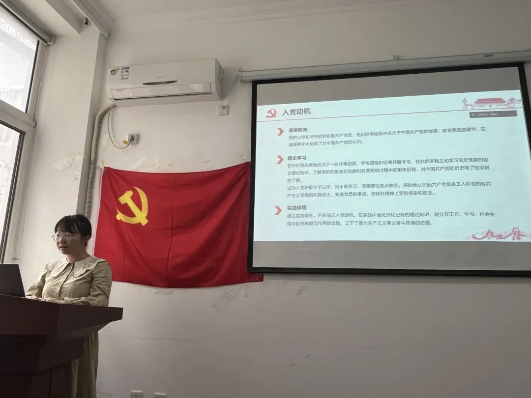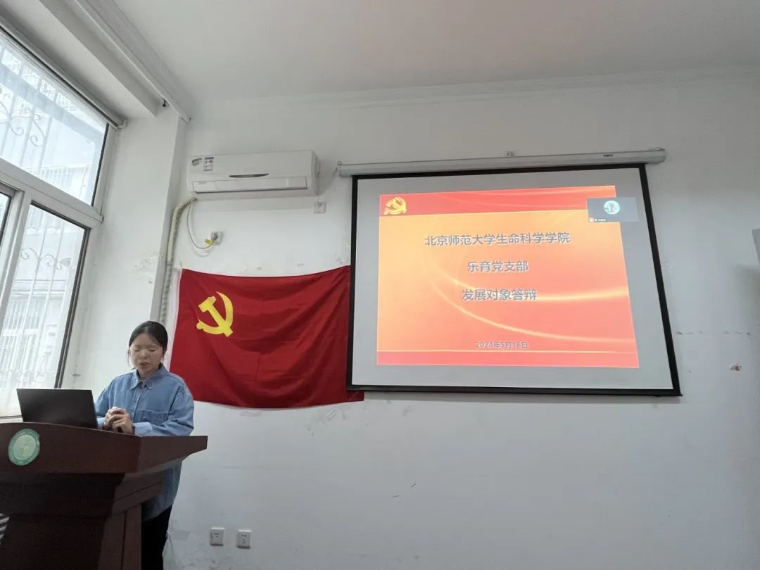 为深入学习贯彻习近平新时代中国特色社会主义思想和党的二十大精神,进一步考察入党积极分子的个人素质,保证发展党员质量,2024年5月19日中午,冰球突破豪华版官方网站乐育党支部于生地楼129教室召开2024年春季学期发展对象答辩会,会议由支部组织委员苏慧岚同志主持,乐育党支部全体党员出席会议。