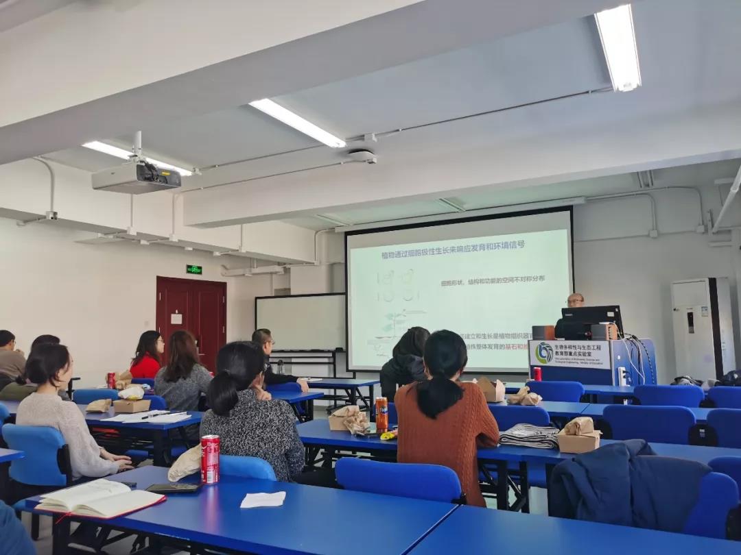本次沙龙的分享嘉宾是来自生物系的张毅老师和来自生态系的张全国老师。首先,张毅老师对自己的研究方向植物细胞骨架的调控做了简单介绍。他从植物细胞壁的重要性讲起,不断提出新的问题引发大家思考,层层深入、抽丝剥茧地讲述了植物细胞壁的合成和调控机制、通过极性生长的方式响应环境变化的过程,并展示了电镜下植物细胞的微观结构。大家就微管的作用、花粉管的生长等问题从不同角度提出新的想法。