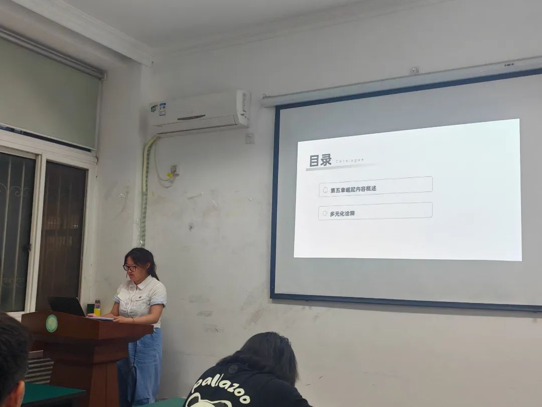 第三党小组的李津莹同志分享了《中国社会政治经济》第一章。她沿时间轴依次分析了传统中国的政治经济结构,近现代转型的断裂与重构,总结概括了当代政治经济体系的特征,并进一步讨论当代中国政治经济体系的韧性与挑战。