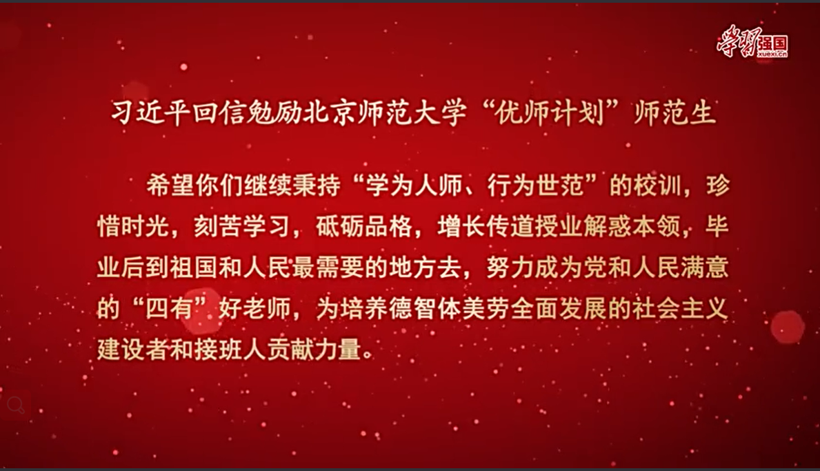 首先,宋宏涛老师带领各位党员老师在学习强国平台一起观看了视频《习近平的教师情》,视频以冰球突破豪华版官方网站建校120周年暨第38个教师节来临之际,习近平总书记回信勉励冰球突破豪华版官方网站“优师计划”师范生为开始,回放了习近平总书记通过回信、考察、座谈等多种方式对教师和教育工作的关心和指导,使各位教师党员深切体会到职业的自豪感和责任感。