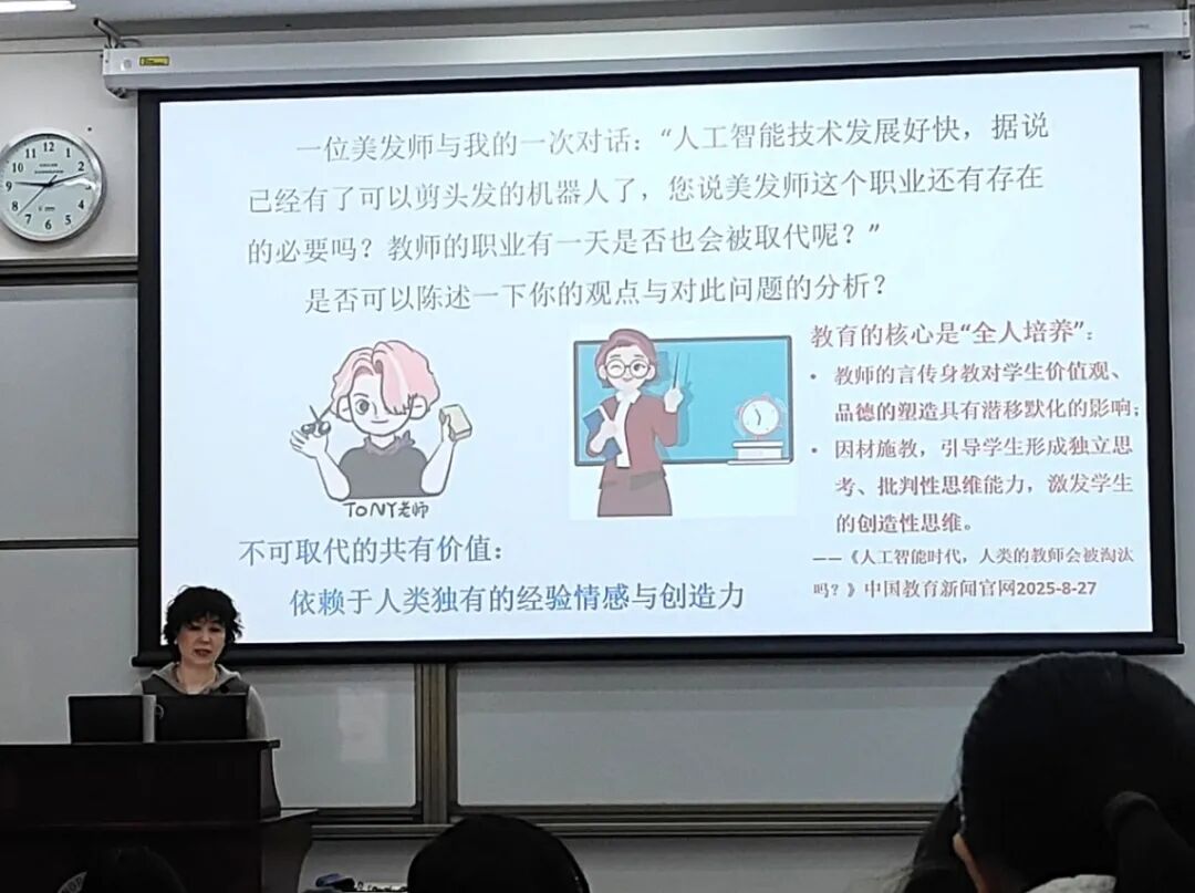 讲座指出,教师的核心价值不仅在于知识的传授,更在于“育人”。在AI能够高效处理知识和技能的今天,教师传递的不仅是知识,更是价值观、人生观和世界观。教师通过言传身教,潜移默化地影响学生的品德与信念,这是机器无法替代的“人师”境界。引导学生形成批判性思维、独立思考能力与创新精神,是教育更深层的目标。