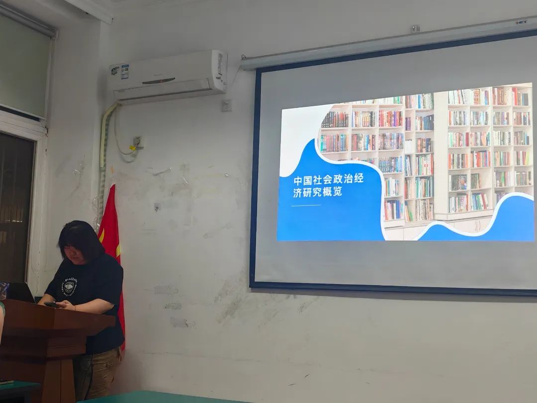 第三党小组的李津莹同志分享了《中国社会政治经济》第一章。她沿时间轴依次分析了传统中国的政治经济结构,近现代转型的断裂与重构,总结概括了当代政治经济体系的特征,并进一步讨论当代中国政治经济体系的韧性与挑战。