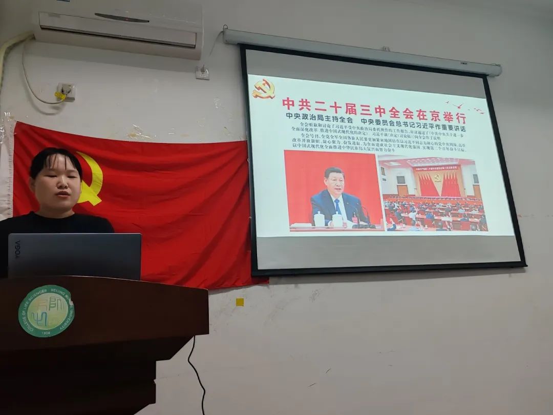 大会第三项,党的二十届三中全会于2024年7月15日至7月18日于北京召开,为进一步学习贯彻学习二十届三中全会精神,深入理解《中共中央关于进一步全面深化改革 推进中国式现代化的决定》,本次党员大会由支部书记带领各位党员同志进行党的二十届三中全会精神的研学讨论,朗读相关条例并分享研学感受。