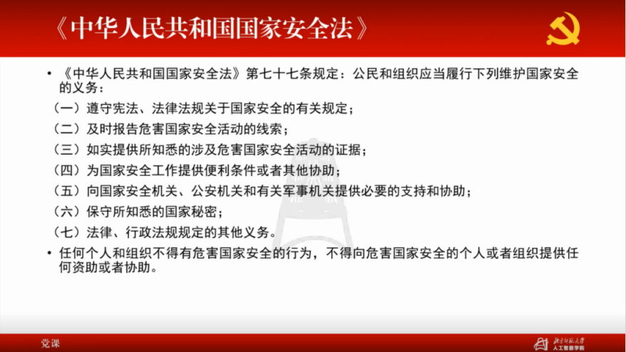 张恒轩以“全民国家安全教育走深走实十周年”为主题,深入讲解了国家安全的重要性和相关法律法规。他指出,2015年《中华人民共和国国家安全法》确定每年4月15日为全民国家安全教育日,2025年4月15日是第十个全民国家安全教育日,这一时间节点具有重要意义。他详细解释了国家安全的定义,强调国家安全是国家政权、主权统一和领土完整、人民福祉、经济社会可持续发展和国家其他重大利益相对处于没有危险和不受内外威胁的状态,以及保障持续安全状态的能力。