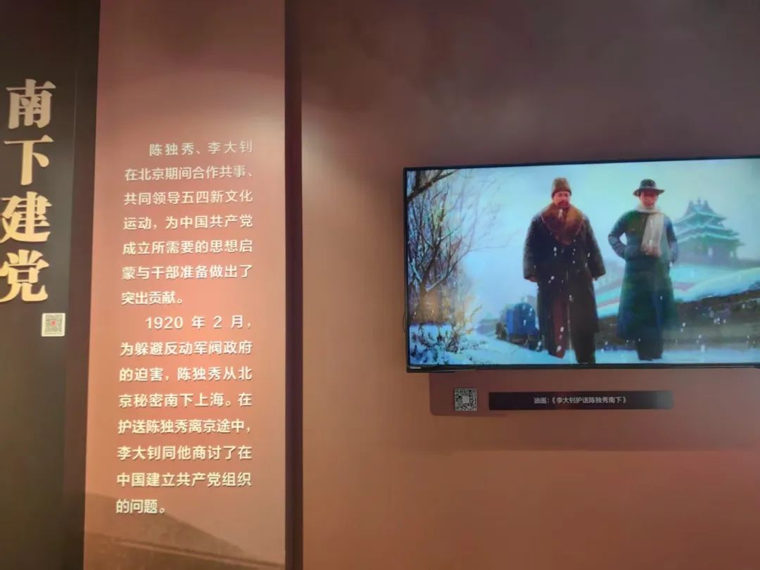李大钊和陈独秀扮作商人,乘坐骡车离开北京。途中,他们深入讨论了在中国建立共产党的问题,并决定分别在北京和上海开展建党活动。这次谈话奠定了中国共产党创建的基础,后被概括为“南陈北李,相约建党”。