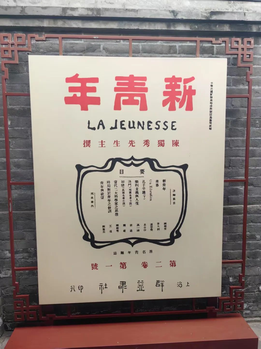 《新青年》(LA JEUNESSE)是在20世纪20年代中国一份具有影响力的革命杂志,原名《青年杂志》,第二卷起改称《新青年》。在五四运动期间起到重要作用。自1915年9月15日创刊号至1926年7月终刊共出9卷54号。由陈独秀在上海创立,群益书社发行。该杂志发起新文化运动,并且宣传倡导民主与科学,科学(“赛先生”,Science)、民主(“德先生”,Democracy)和新文学。