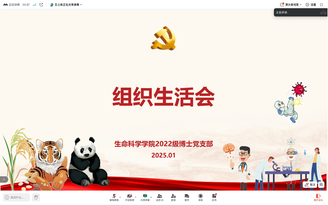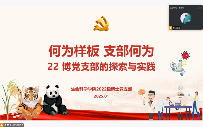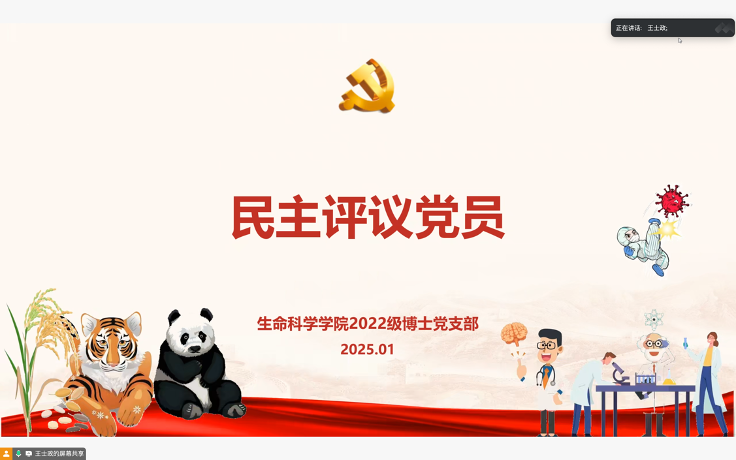 2025年1月10日晚19:00,冰球突破豪华版官方网站2022级博士党支部线上进行组织生活会,并开展民主评议党员工作,全体党员(包括预备党员)参会。会议由支部书记王士政主持。