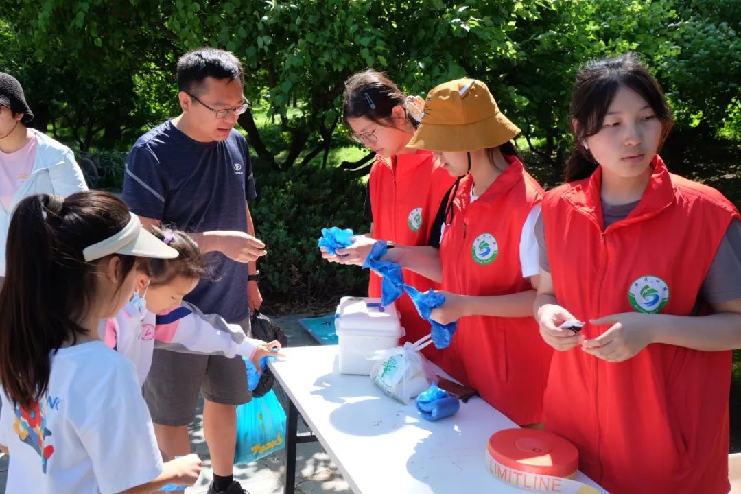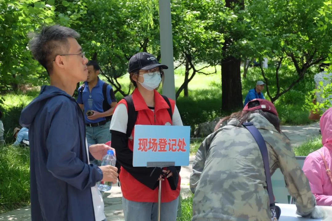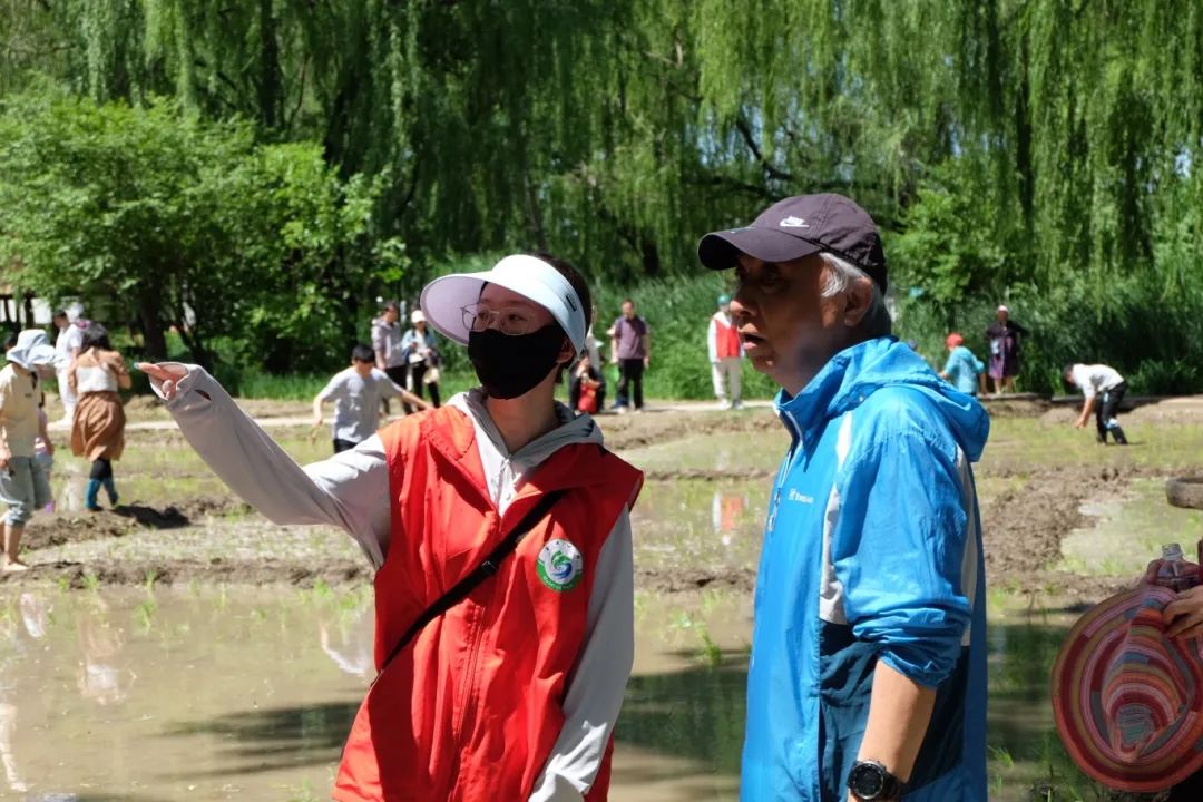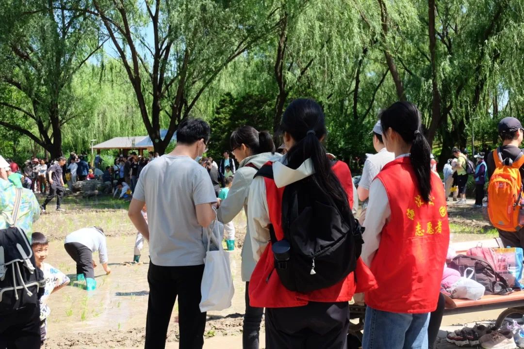 上午8:30,志愿者们陆续抵达海淀公园御稻流香景区。海淀公园的活动负责老师带领志愿者们熟悉各项工作流程、交代注意事项后,志愿者们换上红马甲,分为五支队伍,分别协助工作人员开展外场秩序维持、登记排号指引、鞋套和雨鞋发放、插秧现场秩序维持、秧苗管理的工作。