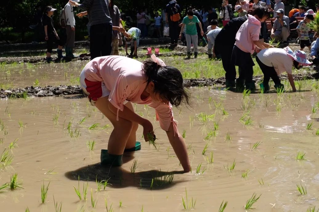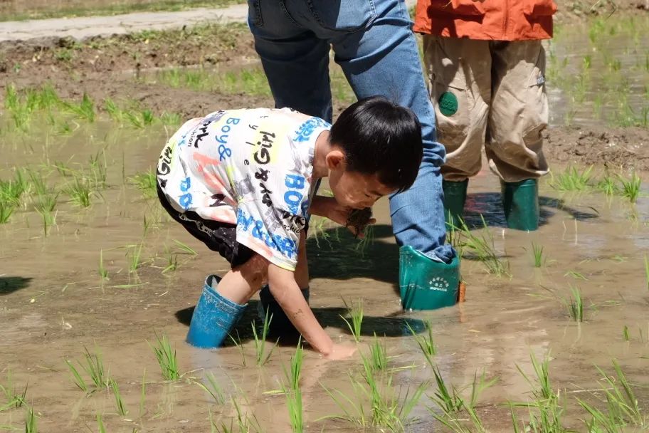 秧田里充满了孩子和家长们的欢声笑语,气氛十分活跃,时时能听到父母通过插秧体验对孩子们进行珍惜粮食、尊重劳动的谆谆教诲。亲手插下一株秧苗,开启一粒稻米的生命之旅,孩子们感受着“粒粒皆辛苦”的含义,成年人体会着“一粥一饭”的得来不易。