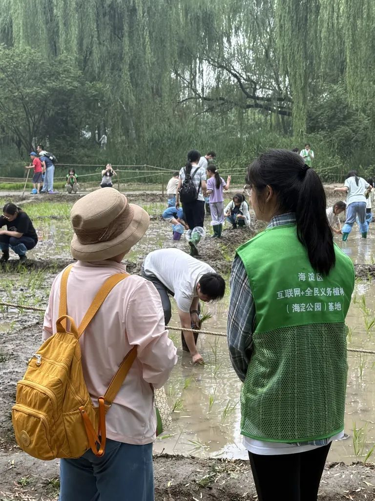 这次海淀公园端午插秧志愿经历格外珍贵。协助小朋友们安全有序地踏入水田,亲手栽下希望的新苗,那份专注与喜悦让我深刻体会劳育的魅力。作为生态学学子,见证活动在公园美好生态中开展,将知识融入实践,从点滴守护这份绿色。每一次弯下腰,每一株秧苗,都是一份生态担当的生动传递。