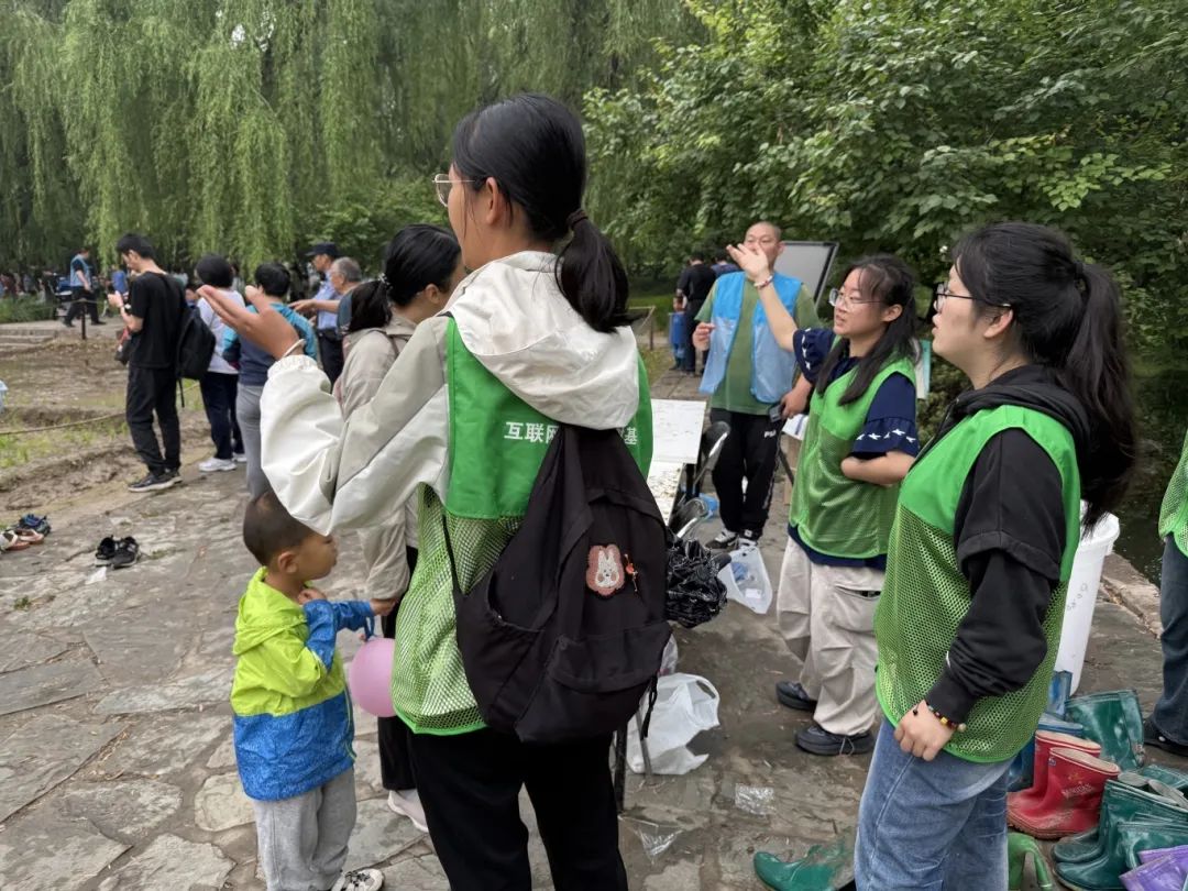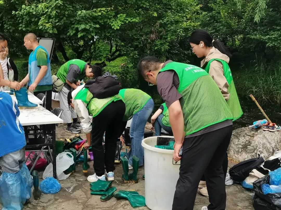 志愿者们也严守岗位,各司其职,有的帮助工作人员分发和回收雨靴,有的帮助维持现场秩序、提醒游客们注意安全,有的热情地为游客们解答疑问,活动秩序井然地开展着。