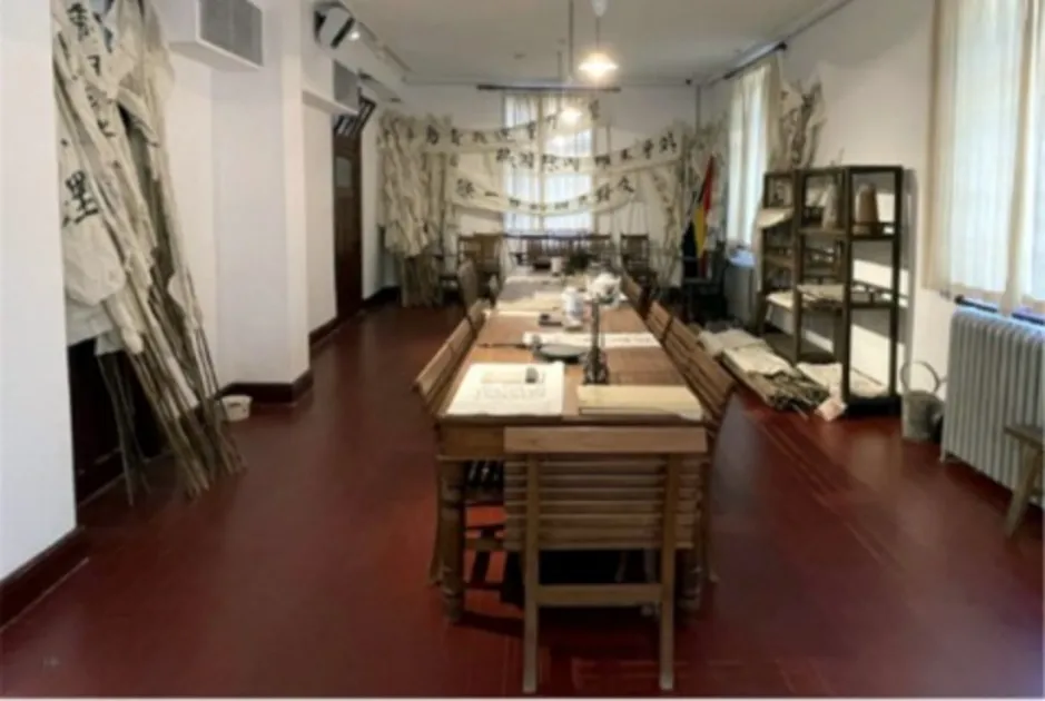 北大红楼一层的119房间,是当年北京大学图书馆主任李大钊的办公室。办公室陈列着李大钊同志当年所用的书柜等办公物品,墙壁上挂着“铁肩担道义 妙手著文章”这一对联,这正是李大钊一生的生动写照。1918年至1922年,李大钊在这里工作期间,他率先在国内宣传俄国十月革命,先后撰写了《布尔什维主义的胜利》等多篇重要文章,成为在中国传播马克思主义的第一人。后来,他与上海的陈独秀等早期党的领导人遥相呼应,开启了“南陈北李 相约建党”的光辉历程。北京共产党小组和共产党北京支部早先都是在这里成立的,北大红楼见证了伟大建党精神的诞生。
