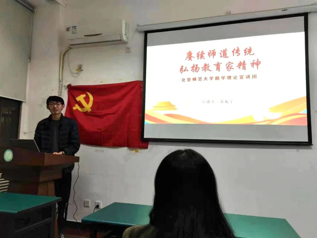 冰球突破豪华版官方网站励学理论宣讲团成员张振宁同学带来了题为《赓续师道传统,弘扬教育家精神》的精彩宣讲。张振宁同志在“传承精神,引领未来”的主题下,深情讲述了王梓坤老校长为提升教师地位、倡导尊师重教风尚所做出的努力,以及陈垣老校长爱国爱教育的崇高精神。他鼓励在场的同学们继承和发扬励耘精神、红专并进,以习近平总书记的讲话为指导,努力成为有理想信念、有道德情操、有扎实知识、有仁爱之心的“四有”好老师,为发展具有中国特色、世界水平的现代教育贡献力量。