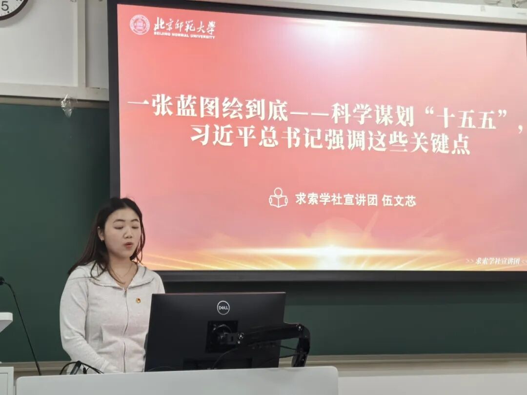 为深入学习贯彻党的二十届四中全会精神,进一步增强“四个意识”、坚定“四个自信”、做到“两个维护”,致知党支部联合2024级本科强基团支部于2025年11月26日18:00在教二103开展了“党的二十届四中全会精神专题学习”党团共建活动。活动邀请了求索学社宣讲团成员伍文芯同志作《一张蓝图绘到底——科学谋划“十五五”,习近平总书记强调这些关键点》专题讲解。